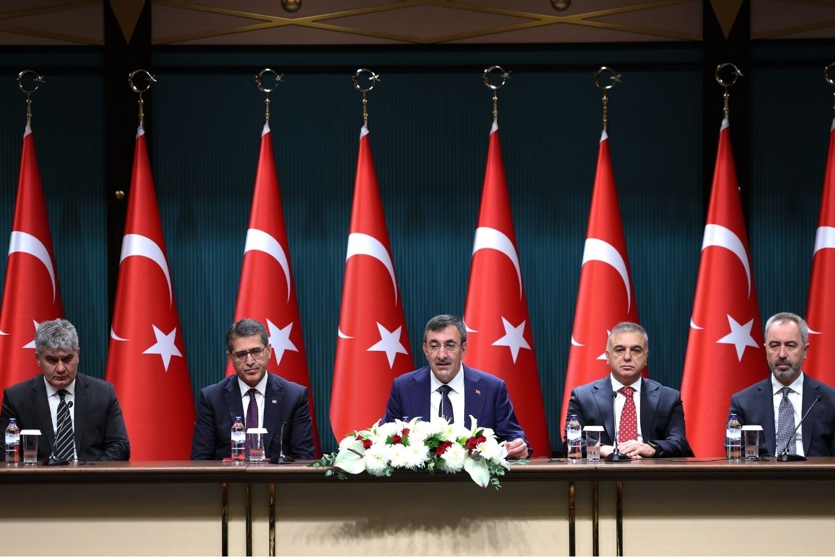 Cumhurbaşkanı Yardımcısı Cevdet Yılmaz, Cumhurbaşkanlığı Külliyesi'nde 2026 Yılı Merkezi Yönetim Bütçe Kanunu Teklifi Basın Bilgilendirme Toplantısı ve Bütçe Bağlama Töreni'nde konuştu. 2026 yılı Bütçe Kanunu teklifini Cumhurbaşkanı Recep Tayyip Erdoğan'ın imzasıyla bugün Türkiye Büyük Millet Meclisi'ne sunacaklarını belirten Yılmaz, bütçenin ülke ve millet için hayırlara vesile olmasını diledi.