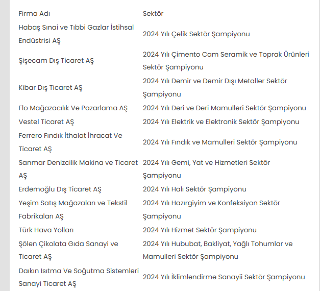 SEKTÖRLERİNDE BİRİNCİ OLAN FİRMALAR