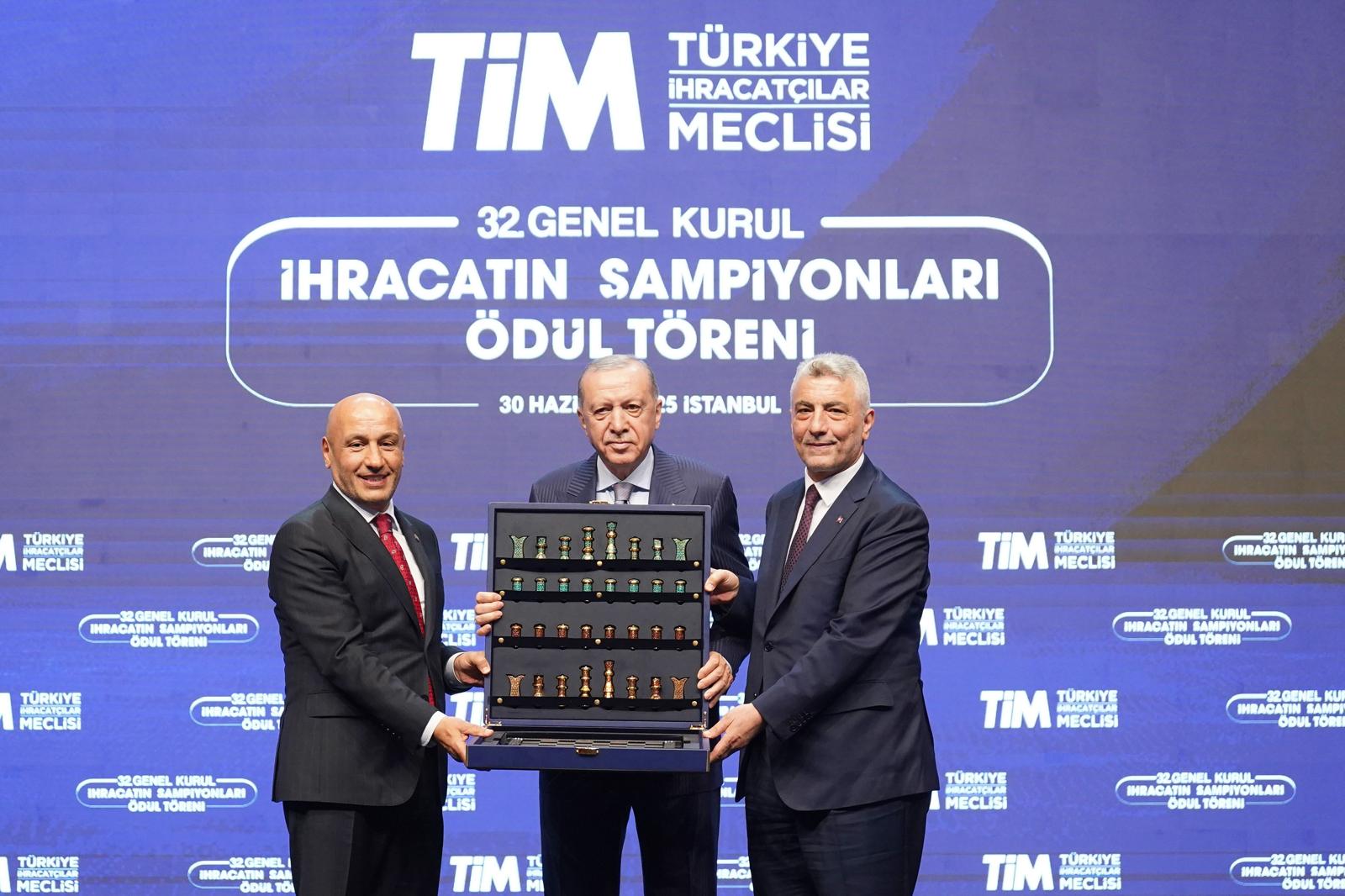 Etkinlikte, geçen yıl Türkiye'nin toplam 377 milyar dolarlık mal ve hizmet ihracatına en yüksek katkıyı sunan firmalar ödüllerini aldı. İlk 10 firma ile e-ihracatta ilk sırayı alan şirketin ödülleri Cumhurbaşkanı Erdoğan tarafından verildi.