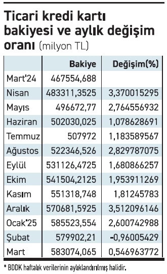 Merkez Bankası’nın kredilere yönelik getirdiği sınırlama, bu kapsamda değerlendirilen ticari kredi kartlarının bakiyelerine de yansıdı. BDDK verilerinden yapılan derlemelere göre ticari kredi kartı bakiyelerindeki artış hızı Aralık’ta yüzde 3.5 ile son 1 yılın en yüksek oranına ulaşırken, sıkılaştırma bu tarihten itibaren etkisini net bir şekilde gösterdi. Ocak’ta yüzde 2.6’ya gerileyen artış hızı yerini Şubat’ta yüzde 0.96 gerilemeye bıraktı. Mart’ta ise yüzde 0.54 ile çok sınırlı bir artış gösterdi.