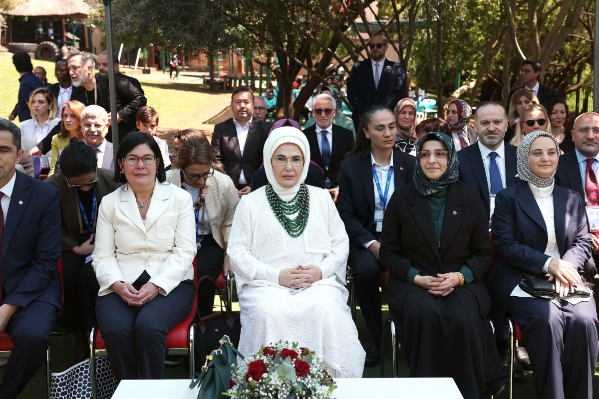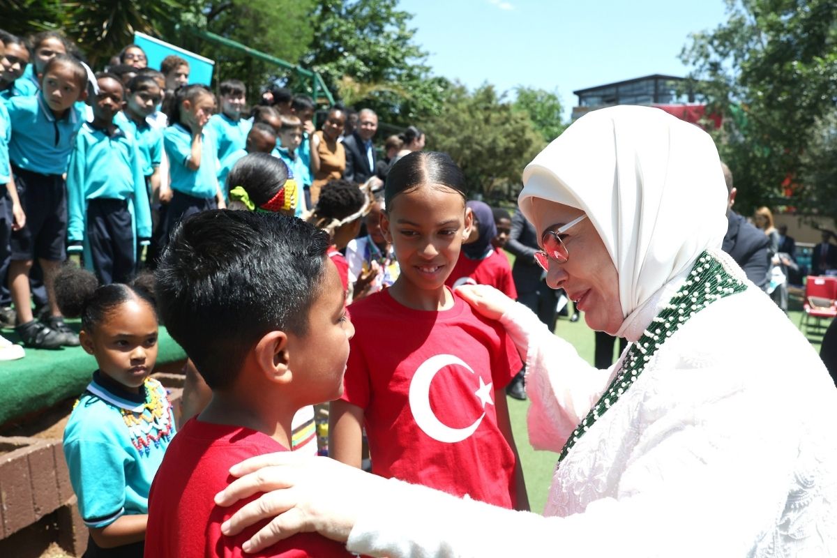 Türkiye Maarif Vakfı'nın Uluslararası Maarif Okulu'nu ziyaret eden Emine Erdoğan, okula gelişinde Maarif Vakfı Güney Afrika Ülke Temsilcisi Abdullah Cevizci ve öğretmenler tarafından karşılandı.