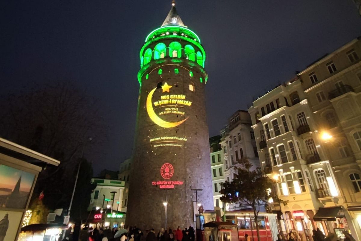 Görselle birlikte kuleye yansıtılan "Hoş Geldin Ya Şehr-i Ramazan" ve "Merhamet, Bağışlanma ve Huzur Ayı" yazıları ile İngilizce tercümeleri ilk gününde ilgi gördü.