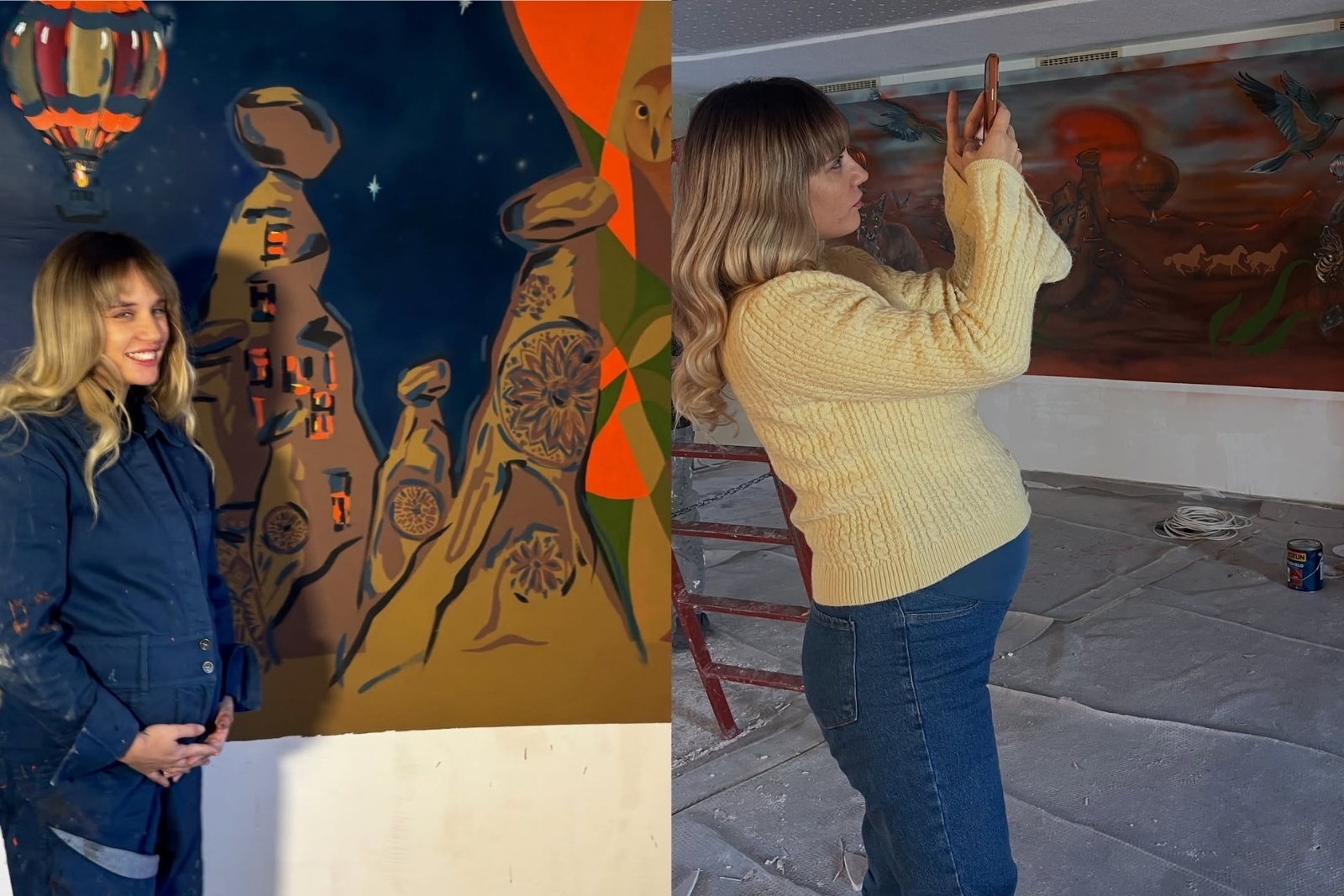 Çalışmadan duramayan Eda Zamanpur büyüyen göbeğiyle Kapadokya'ya gitti. Tatile değil işe giden Zamanpur, otelin duvarlarını sanat eserine dönüştürdü. "Doğuma 1 ay kala şantiyede 10 metrelik duvar resmi yapıyorum. Pars'la işimizin başındayız" dedi.