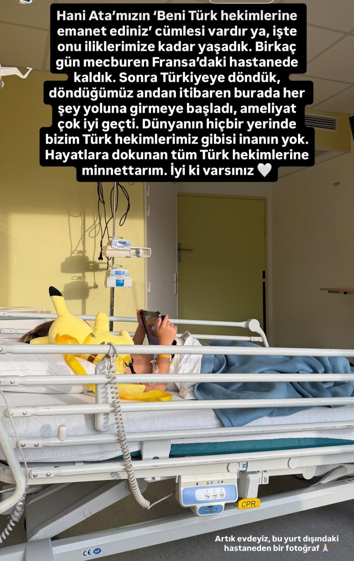 Rachel Araz, sosyal medya hesabından yaptığı açıklamada Türk doktorlara teşekkür ederek, “Atatürk’ün ‘Beni Türk hekimlerine emanet ediniz’ sözünü iliklerimize kadar yaşadık. İlk birkaç gün mecburen Fransa’daki hastanede kaldık. Türkiye’ye dönünce her şey yolunda gitmeye başladı. Ameliyat çok iyi geçti. Dünyanın hiçbir yerinde bizim Türk hekimlerimiz gibisi yok. Hepsine minnettarız, iyi ki varlar” ifadelerini kullandı.