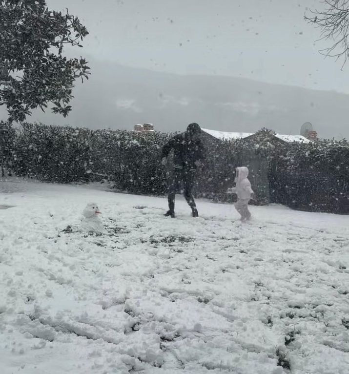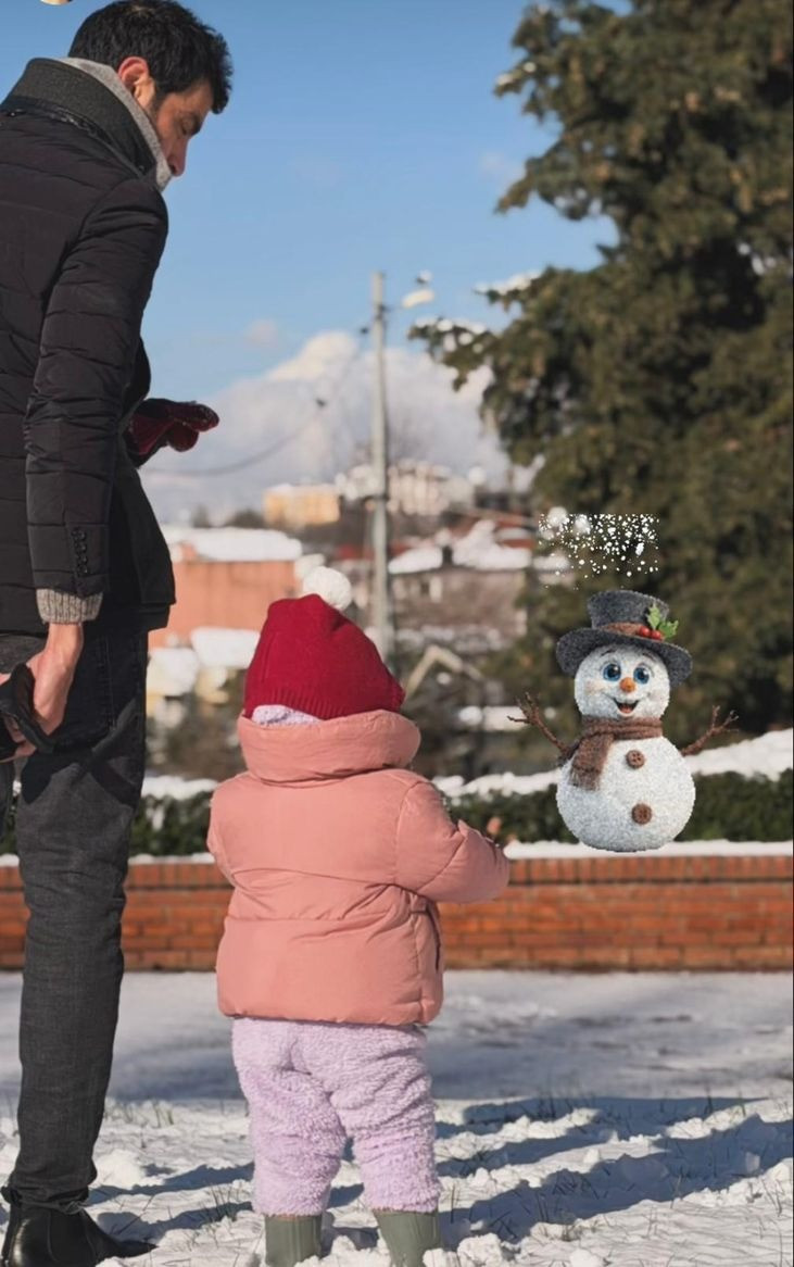 Oyuncu Murat Yıldırım'ın eşi İman Elbani de eşinin kızları Mira ile kardan adam yapıp, oyun oynadığı anları yayımladı.