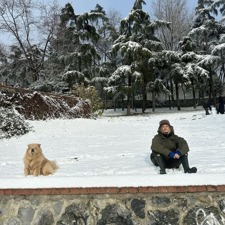 Oyuncu Dilara Sümbül de kar yağışının ardından soluğu dışarda aldı.