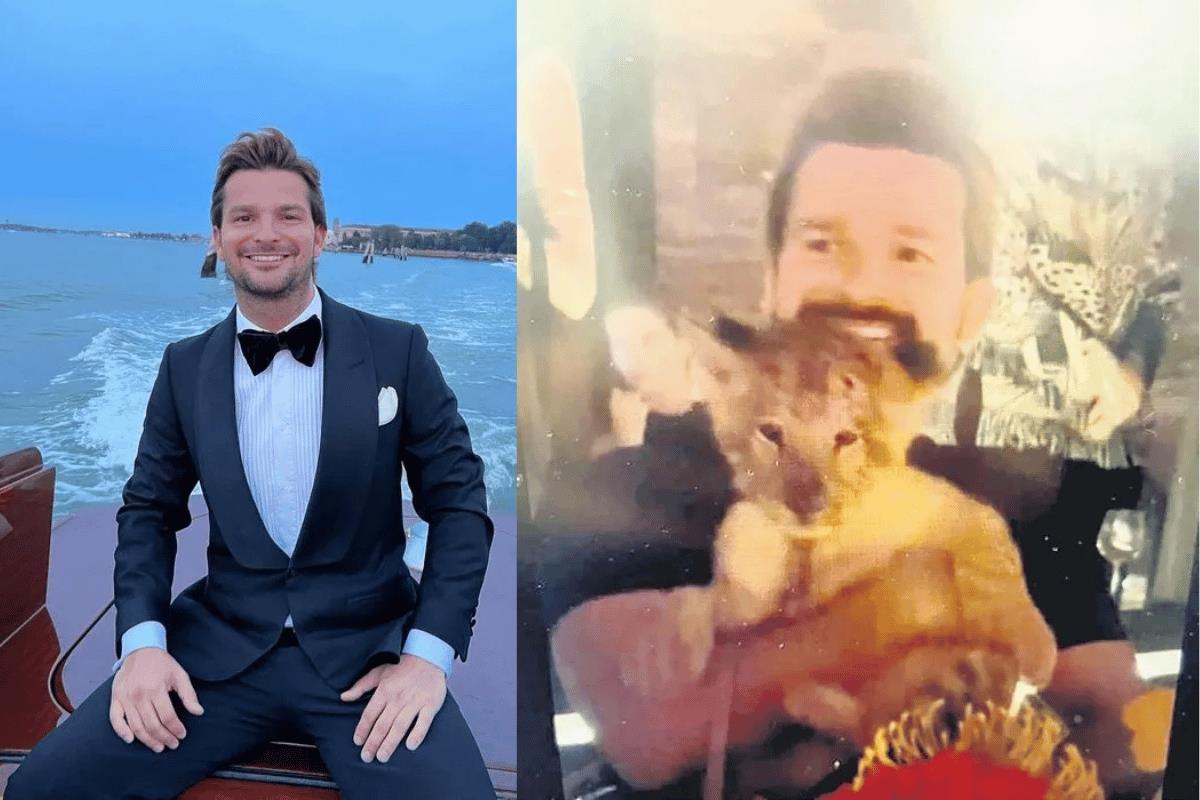 Genç iş insanı Sinan Tuna'nın Formula 1 etkinliklerine katılmak için Meksika'da bulunduğu, yavru aslanı gizlice partiye soktuğu belirlendi.