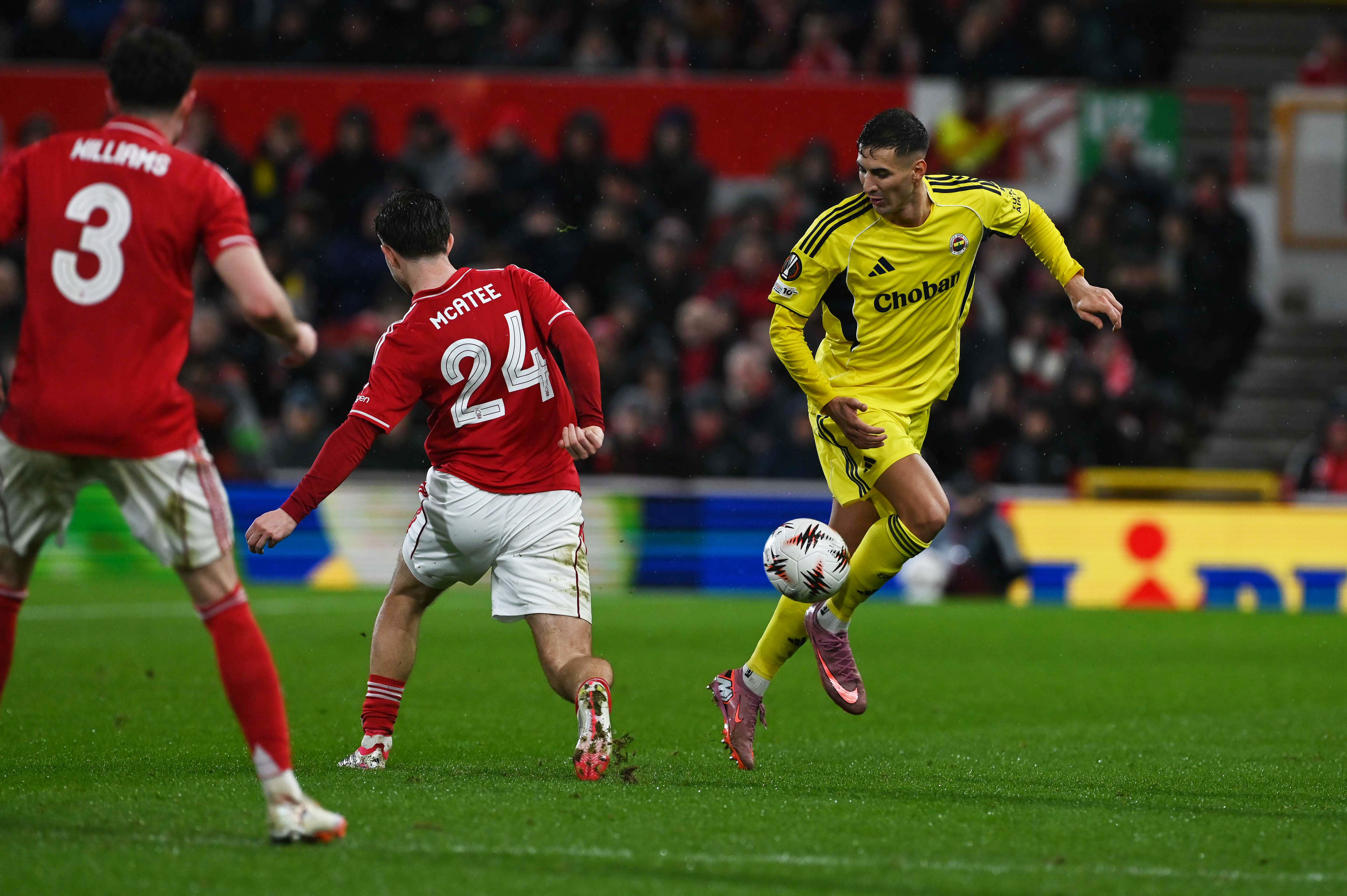 City Ground Stadı'ndaki karşılaşmaya etkili başlayan sarı-lacivertliler, 22. dakikada Kerem Aktürkoğlu'nun golüyle öne geçti. Üstün oyununu sürdüren Fenerbahçe, üst üste pozisyonlardan faydalanamadığı ilk yarıyı 1-0 üstün tamamladı.