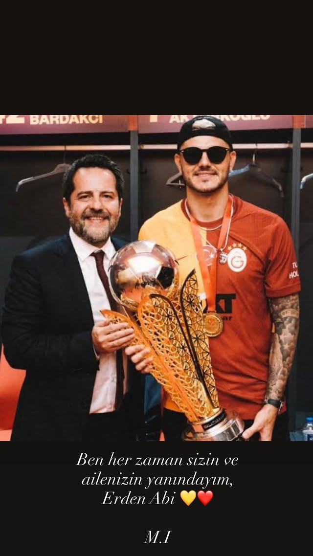 Erden Timur'un yöneticilik yıllarında kazanılan bir kupayla birlikte çekildikleri fotoğrafı Instagram hikayesinden paylaşan Icardi paylaşımına şu notu düştü: