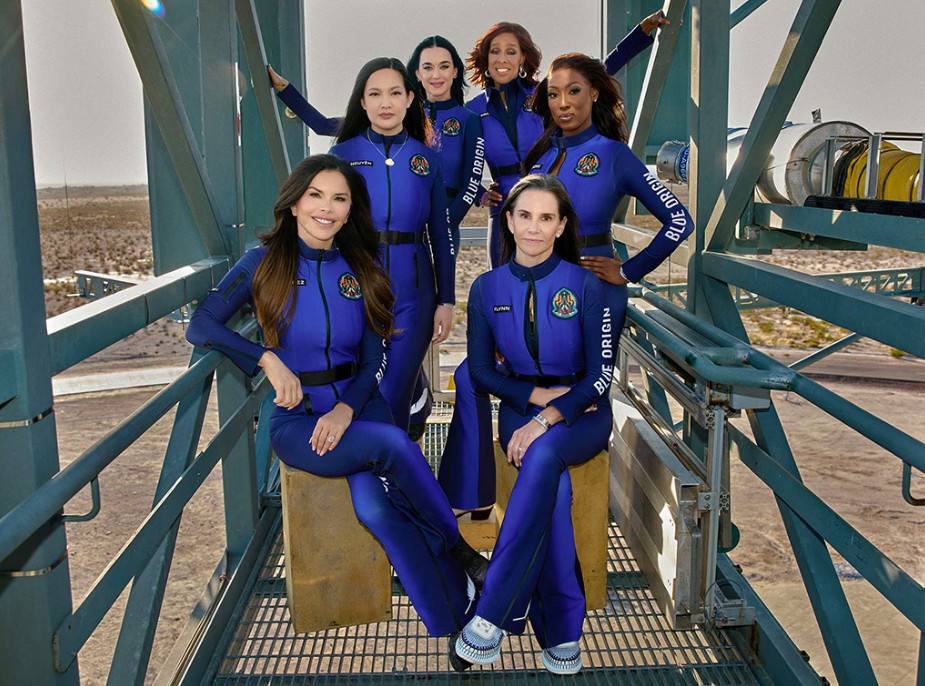 Kapsüldeki 6 kişilik ekipte pop yıldızı Katy Perry, CBS ulusal televizyonunda program sunucusu Gayle King, Jeff Bezos'un nişanlısı olan eski gazeteci Lauren Sanchez, eski NASA roket bilimcisi Aisha Bowe, biyoastronotluk araştırmacısı Amanda Nguyen ve film yapımcısı Kerianne Flynn yer aldı.