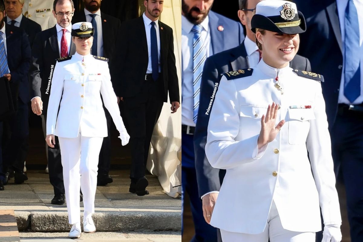 Leonor, denizci üniformasıyla disiplinli bir duruş sergilerken, geleceğin Kraliçesi olarak silahlı kuvvetlerdeki görev rotasını başarıyla sürdürüyor.