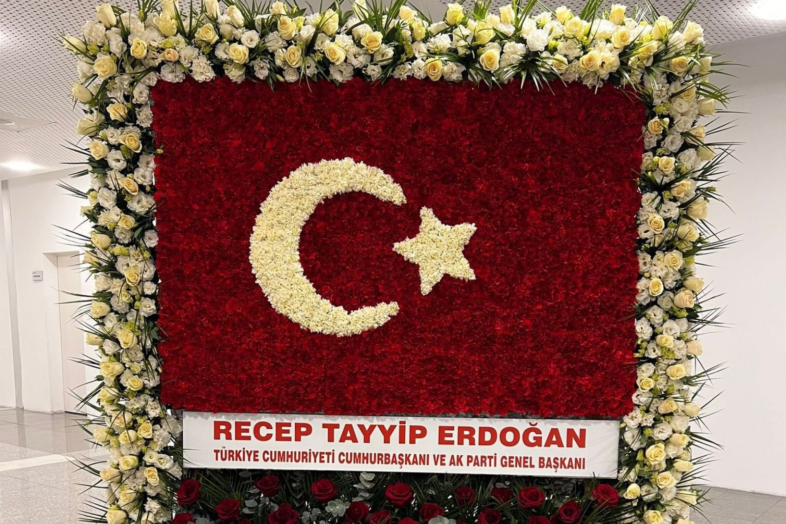 Cumhurbaşkanı ve AK Parti Genel Başkanı Recep Tayyip Erdoğan, MHP'nin 57. Kuruluş Yıl Dönümü Programı'na özel Türk bayrağı şeklinde çiçek aranjmanı gönderdi.