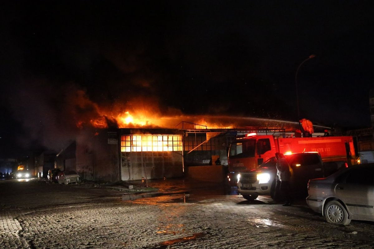Antakya Sanayi Sitesi'ndeki bir otomobil tamirhanesinde henüz belirlenemeyen nedenle yangın çıktı.