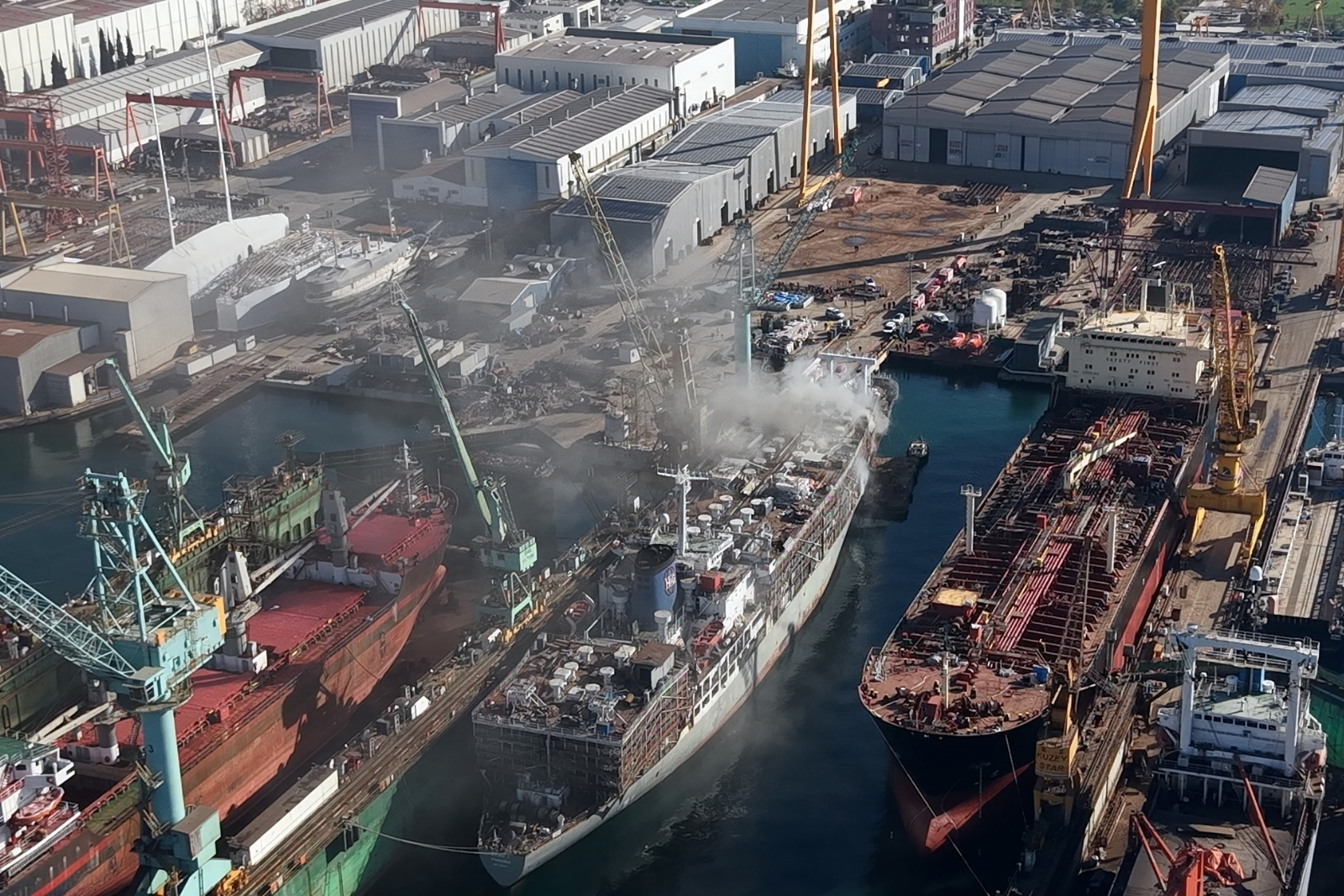 Tersaneler Caddesi'nde bulunan bir tersanedeki gemide henüz belirlenemeyen nedenle yangın çıktı.