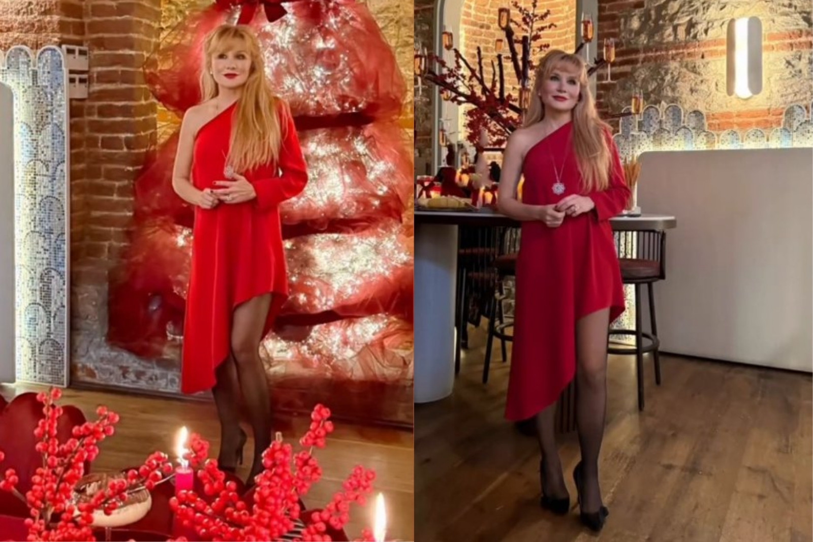 Ailece yeni yıl yemeği yiyen Zorlular, seneyi bir arada kapatmanın keyfini yaşadı. Kırmızının hakim olduğu gecede Berrin Hanım, kırmızı ebisesiyle ağaç önünde poz verdi.