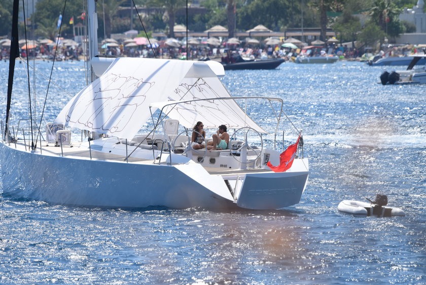 Aşklarını gözlerinden uzak yaşamayı tercih eden çift, bu kez Türkbükü'nün tam olarak sahip olduğu, Hakko'nun yeni lüks yelkenli teknesinde görüntülendi. Sabah saatlerinde günün merhaba diyen çift, aşk pozları verircesine samimi halleriyle dikkat çekti.
