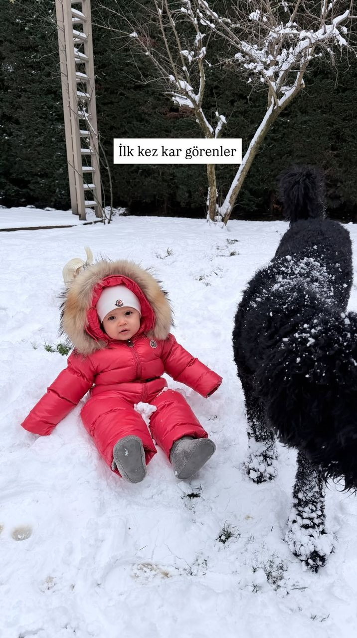 Oyuncu Kıvanç Tatlıtuğ'un eşi Başak Dizer, oğlu Kurt Efe Tatlıtuğ'un karda oynarken çektiği fotoğrafını paylaştı.