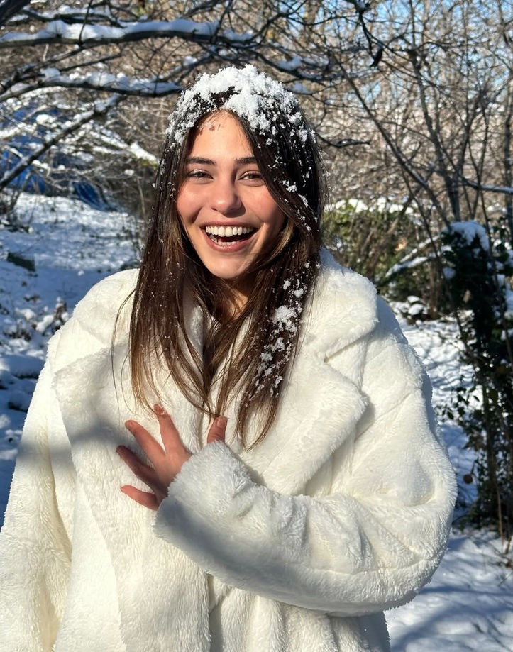 Oyuncu Alina Boz da kar yağışına kayıtsız kalmadı.