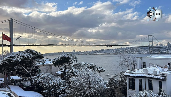 Oyuncu Ayşe Kırca ise adeta beyaza bürünen İstanbul Boğazı'nı fotoğrafladı.