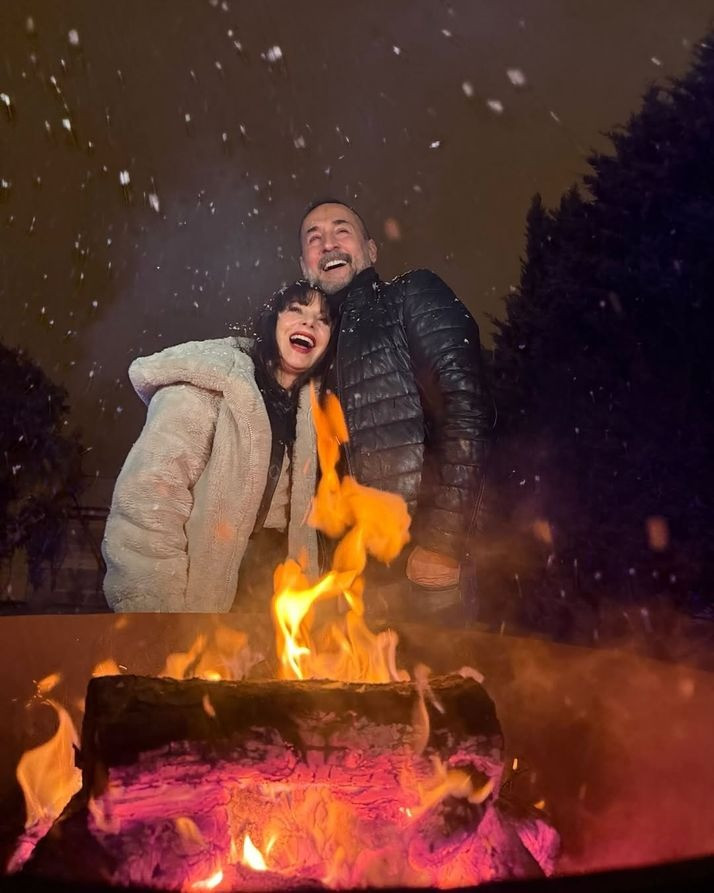 Oyuncu Şenay Gürler de milli bilardocu sevgilisi Semih Saygıner ile birlikte karda ateş başında poz verdi.