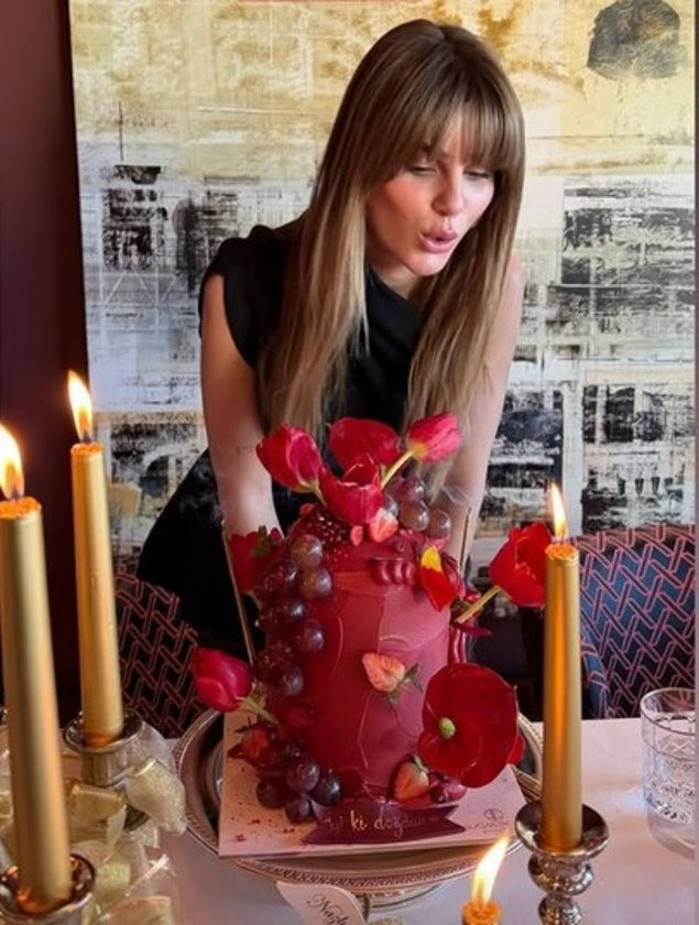 Nazlı Sabancı, yeni yaşına evinde merhaba derken kırmızı ve siyah rengin hakim olduğu doğum günü pastasını üfledi.