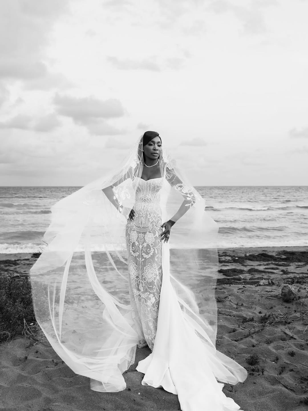 Vogue’un paylaştığı fotoğraflarda Williams, ünlü modacı Georges Hobeika imzalı, transparan dantelli ve derin dekolteli gelinliğiyle dikkat çekti.