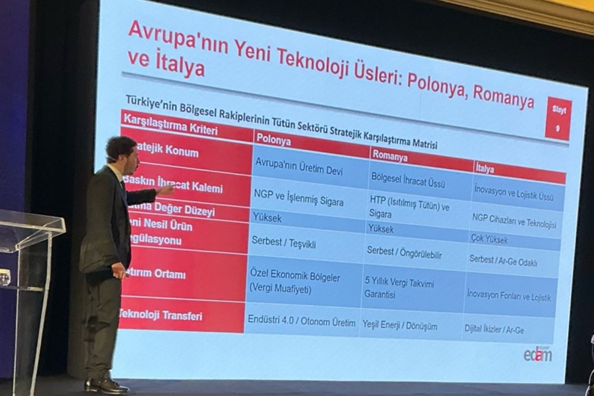 Ekonomi ve Dış Politika Araştırmalar Merkezi (EDAM) adına konuşan Can Selçuki ise, küresel tütün sektörünün yüksek teknoloji ekseninde dönüşüm geçirdiğine dikkat çekti.